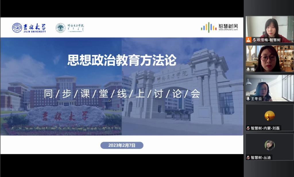 为了更好地推进思想政治教育专业建设,在“慕课西行2.0”项目的支持下,近日,永利yl304与吉林大学永利yl304在线上召开《思想政治教育方法论》同步课堂研讨会。会议由“智慧树”平台的税老师主持。会上,首先由吉林大学永利yl304的王冬云教授介绍“思想政治教育方法论”课程的基本情况、教学内容、授课形式等方面,充分展现了本课程的建设实效与经验。其次,我院青梅老师介绍了本课程的基本情况、教学安排与进度、学生情况和授课形式等方面,并与吉林大学永利yl304开展同步课堂合作的初步的需求与展望。同时,智慧树平台的税老师简单介绍了两所学校同步课堂教学的具体要求、相关准备和注意事项。汇报结束后,吉林大学永利yl304的课程团队为我校本课程进行问诊把脉、开出良方。在两所学校课程团队老师热烈地讨论之下,最终确定了“思想政治教育方法论”课程同步课堂的次数、主题、时间、上课形式和课堂教学环节。本次研讨会是思想政治教育专业进行线上合作的良好开端,是加强两校教师紧密协作交流的研讨会,是一次异地云端同上一堂课的教研活动。不仅有助于提升教师的教学能力,还能提高学生的知识水平,更重要的是学院在对外交流合作与进一步提高教学质量等各项工作上将迈上新的台阶、做出更好的成绩。