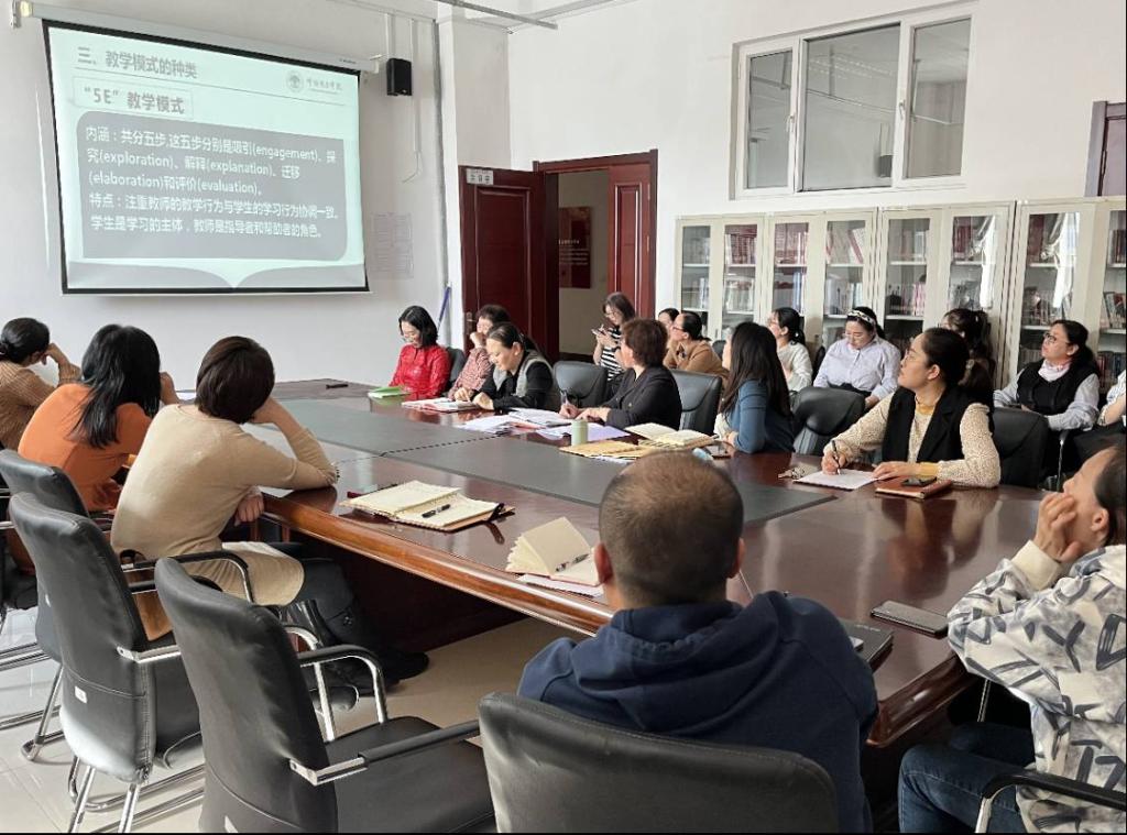 首先,由教研室主任魏婉莹对于课堂教学模式的含义、完整教学模式的五大要素以及5种具体教学模式进行详细介绍。其次,刘鹤老师分享了参加高校教师教学技能创新大赛的过程及其感想,为我院教师提供了宝贵的经验。再次,高凤杰老师通过学习通建课的过程和学生学习效果与其他教师进行经验上的交流,引发了热烈的讨论。最后,李俏院长进行了活动总结,并提出要求:适应新形势下高校课堂教学发展,利用现代化教学手段推动教学模式改革,创新课堂教学方式方法,提高师范生人才培养质量。