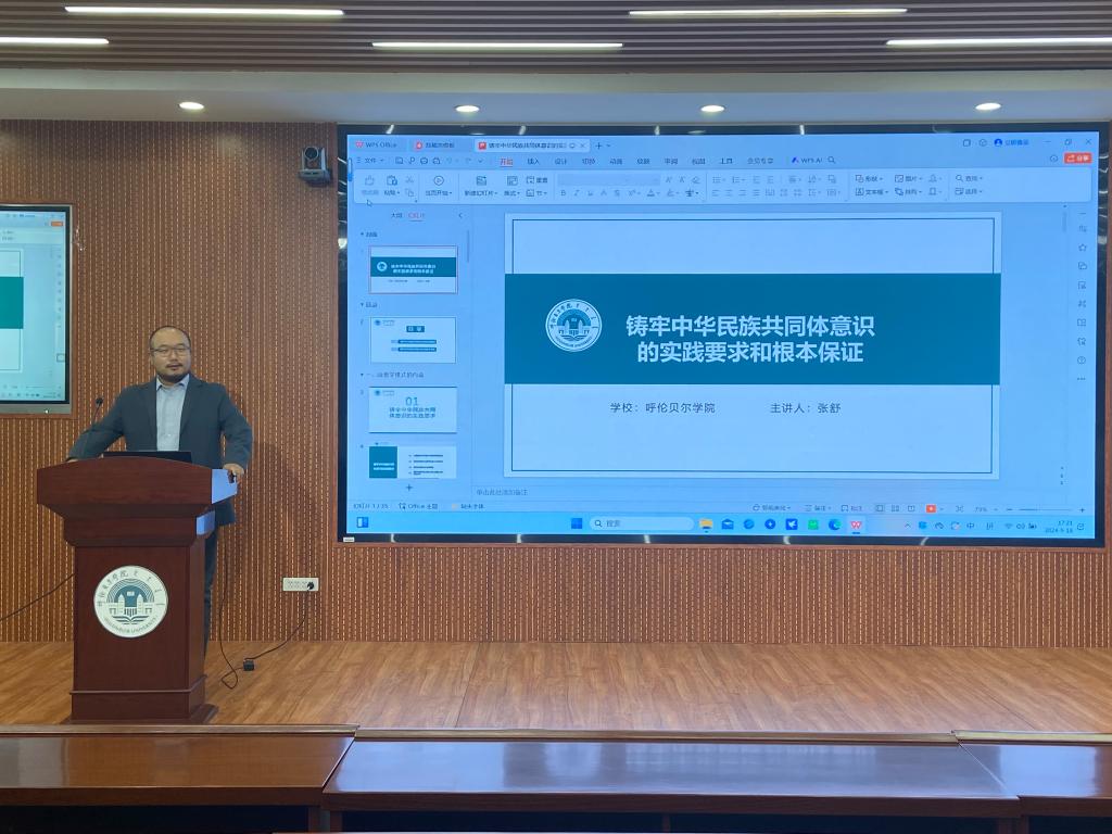 为深入学习贯彻党的二十届三中全会精神,进一步推动铸牢中华民族共同体意识走深走实,更好地履行举旗帜、聚民心、育新人、兴文化、展形象的使命任务,9月18日下午,永利yl304铸牢中华民族共同体意识教研室教师张舒、程欣、窦红伟三位教师受呼伦贝尔市民委和校宣传部委托进行了铸牢中华民族共同体意识主题宣讲。
