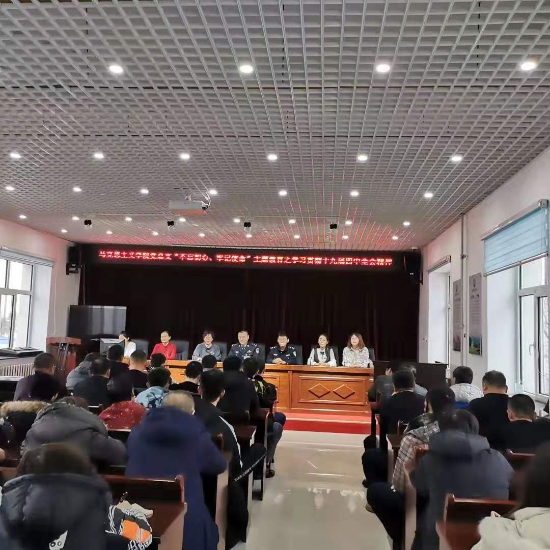 2019年11月22日下午,永利yl304党总支书记刘凤琴、副书记刘琳、教师李琳颖、张舒、吴娇、李昱以及优秀学生代表赴鄂温克自治旗巴彦托海司法所进行“学习贯彻十九届四中全会精神”理论宣讲。司法所组织辖区保释人员、矫正人员等40余人以及司法所全体工作人员参加宣讲活动。主讲教师李琳颖。