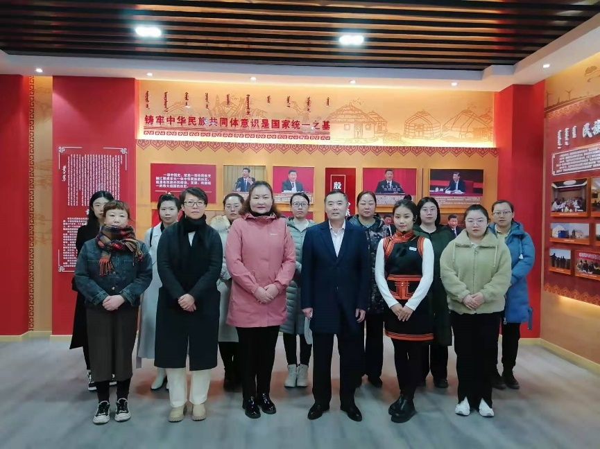 4月7日上午,永利yl304“铸牢中华民族共同体意识”教研室全体教师在教研室主任海龙教授的带领下赴陈旗民族团结进步教育基地进行参观和现场集体备课。陈旗民委副主任乌仁高娃陪同参观。