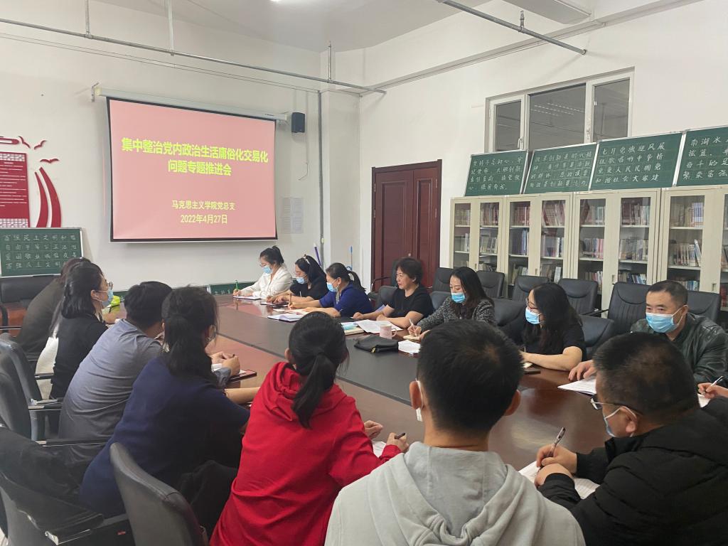 2022年4月27日,永利yl304在崇文楼B123会议室召开集中整治党内政治生活庸俗化交易化问题专题会,学院全体党员干部参加会议。