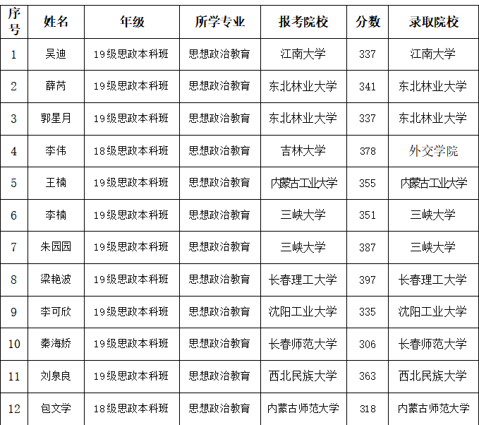 永利yl3042023研究生考试再创佳绩,学院报名参加硕士研究生考试33人,达国家线14人,目前12人已被录取。具体情况如下: