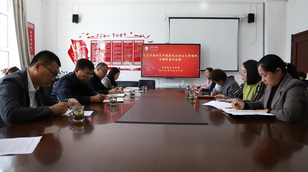 为高质量建设好、讲授好思政课,推动习近平新时代中国特色社会主义思想进教材、进课堂、进头脑,更好的落实立德树人根本任务,2023年9月20日,校党委书记王广利,校党委副书记张宏天,校党委委员、宣传部部长李俏和教务处副处长王继钢深入永利yl304参加《习近平新时代中国特色社会主义思想概论》课程集体备课,会议由永利yl304院长吴秀芳主持,学院全体教师参加备课会。