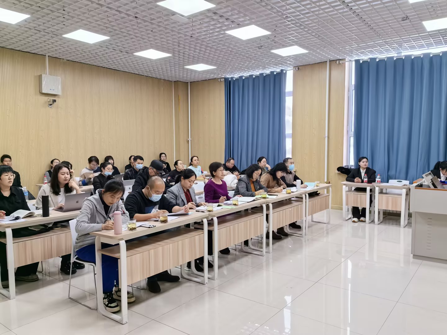 本次比赛评委由学院班子成员、教授和教学督导成员担任。近五年新入职教师参加了比赛。本次比赛对标自治区青年教师教学技能大赛赛制设计比赛方案,选手们为在场观众呈现了精彩的课堂讲授和深刻的教学反思。赛后,学院院长吴秀芳对比赛进行了总结,充分肯定了青年教师在比赛中的表现,希望全院教师以本次比赛为契机,立足课堂教学切实提升自身教学能力,助力推进学院师范专业认证工作做深做实。