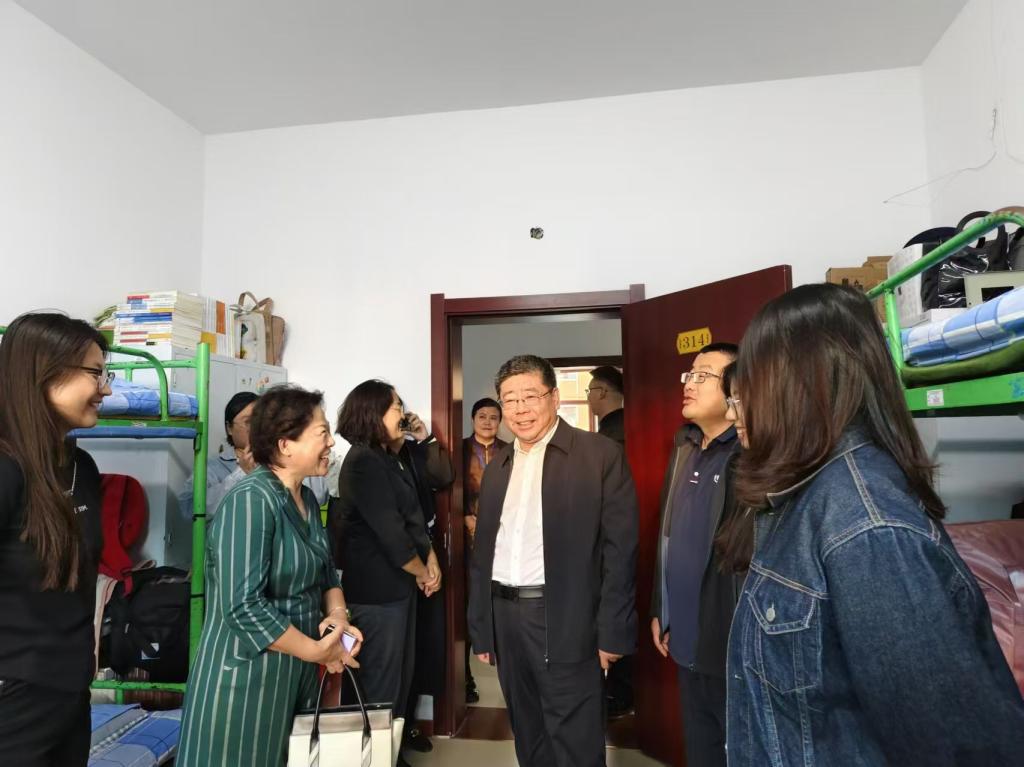 为进一步落实立德树人根本任务,推进“一站式”学生社区建设,深入了解学生生活、思想状况,9月6日下午,校党委书记李文阁、学生工作处处长郝新君、党政办主任吴宏伟、永利yl304党总支书记刘凤琴、院长吴秀芳和辅导员齐宸等一行深入3号楼学生宿舍走访调研。