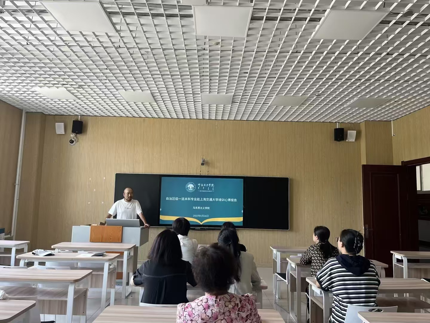 6月24日,永利yl304举行自治区级一流本科专业赴上海交通大学培训经验交流活动,中国近现代史纲要教研室主任张舒老师重点围绕三个方面介绍了本次培训的心得体会。